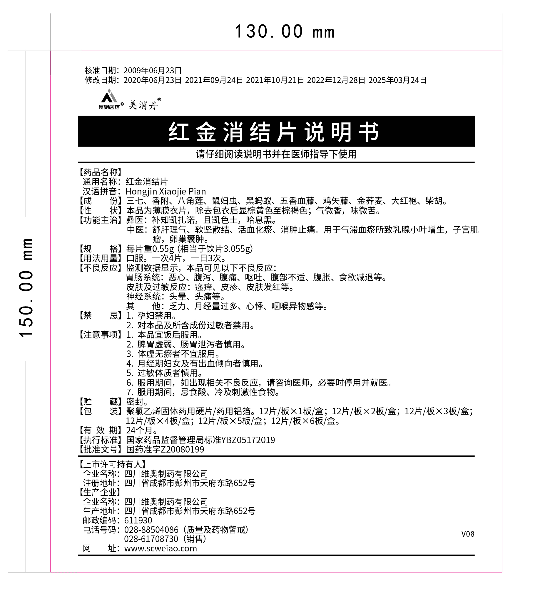 192025-09我司對(duì)紅金消結(jié)片說明書(批準(zhǔn)文號(hào):國(guó)藥準(zhǔn)字Z20080199)進(jìn)行修訂